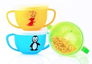 After a long two hour drive to visit relatives during which I had to hold a hand full of cereal in my hand over the seat to keep my hungry 18 month old happy, I went in search of this cup. I was so thrilled when it arrived that we broke one out and tried it right then and there. We are very happy with the Snack Trap. We've tried it with big things such as animal crackers and smaller things like apple bits and have had success with everything so far. My son was notorious for dumping anything I gave him in a bowl. While it is true that he can figure out a way to dump the Snack Trap if he wants to, I find that as long as I only give it to him when he is hungry, he uses it properly. We are very happy with this product and will probably be purchasing more in the future.