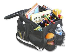This organizer comes complete with a large roomy storage area for bulky items and toys, plenty of small pockets all around the exterior for additional items, and a lid taht doubles as a food tray. Here's a list, with measurements. The pockets are not rigid, so there's some give and take in terms of what you can fit in them.