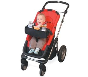 I love this snack caddy! I was looking for one since my Bugaboo doesn't have one (nor do they make one!) and this one is perfect! I can attach it either way, so it can be close to my son, or just within his reach. It may rest on his legs when his water bottle is in it, but it is not a problem. I squeezed a little bowl into the snack compartment so I don't have to wash it quite so often. I love the loops for toys too!